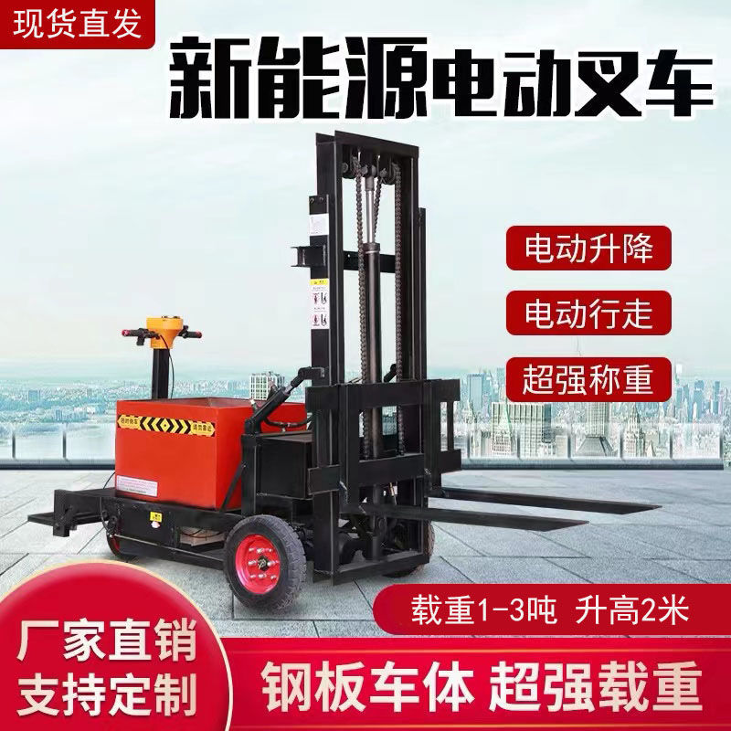 成功镇小型电动叉车1吨站驾式2吨液压升高铲车全自动仓储堆高车